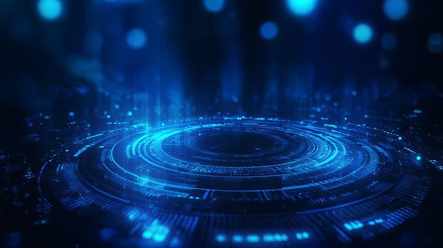 未来蓝色电路板的三维渲染3d rendering of futuristic blue circuit board