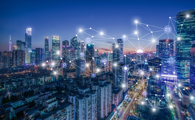 广州现代建筑城市风光,智慧城市互联网5G高速发展,人工智能大数据概念视图