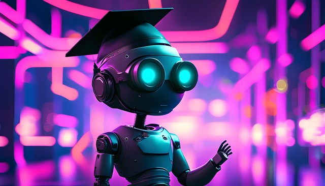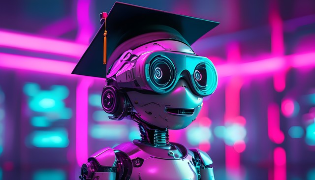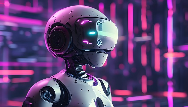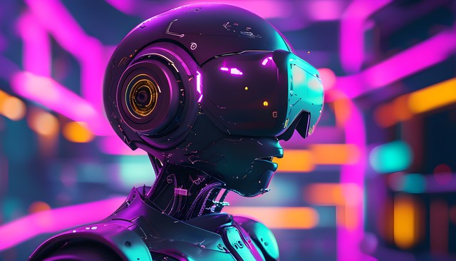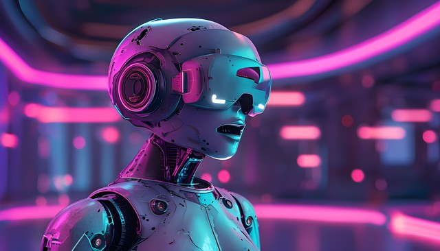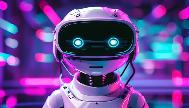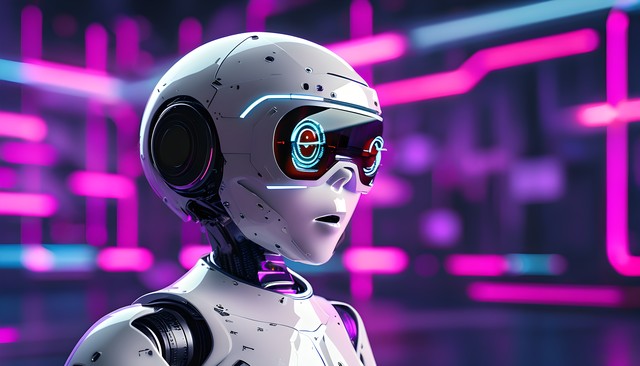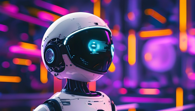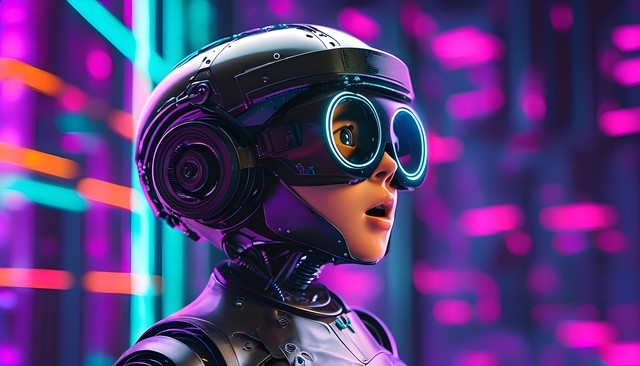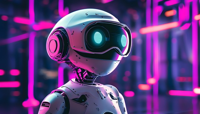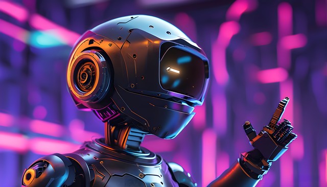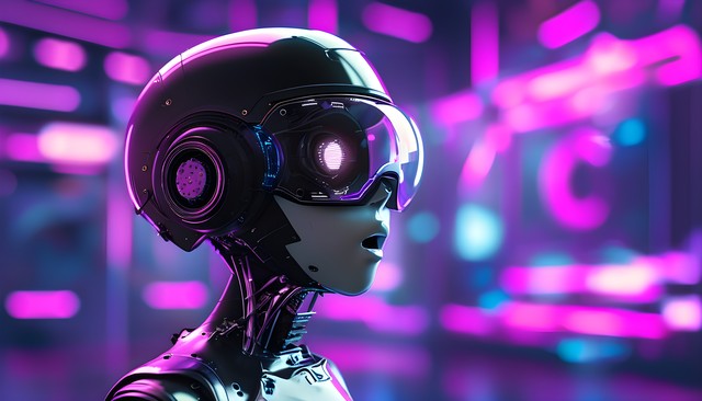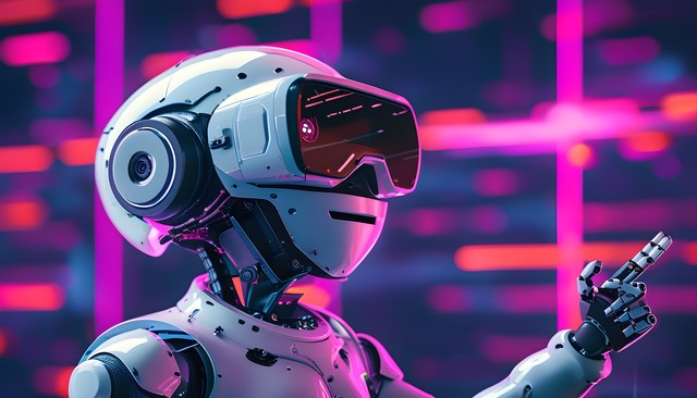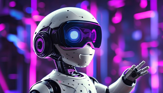 未来感十足的机器人佩戴虚拟现实眼镜,展示出科技的魅力。