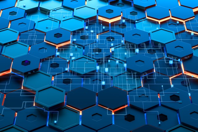 六边形网格组成的未来科技感的地球 代表高科技、大数据和物联网 点阵的球体和六边形网格地球
