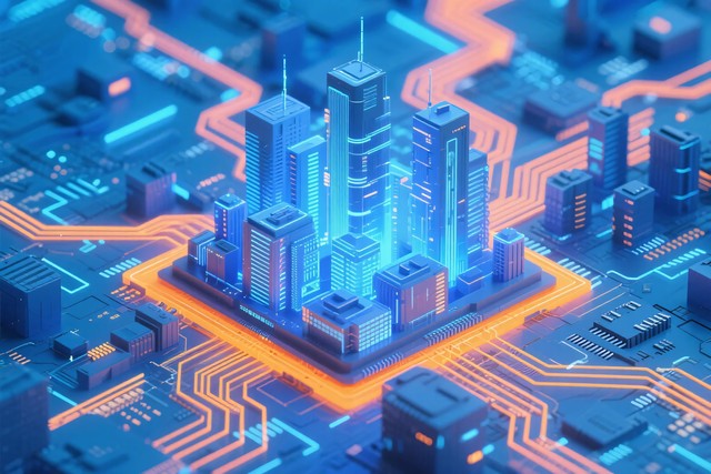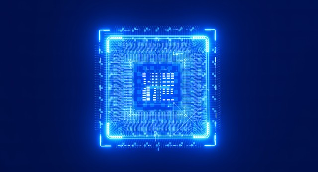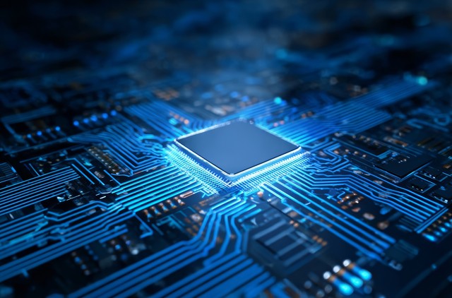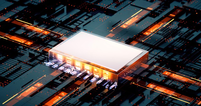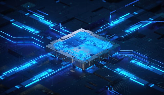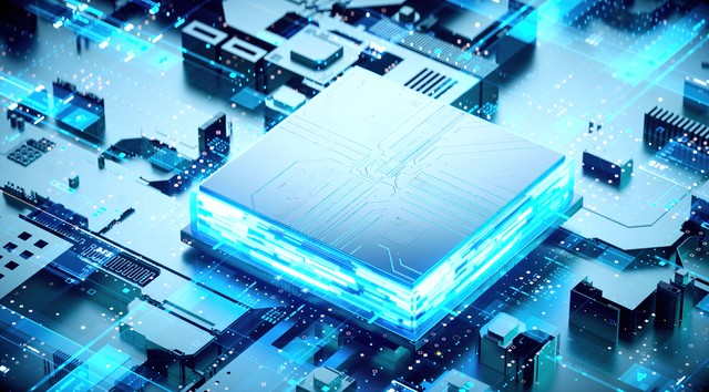 芯片金融科技赛博朋克人工智能三维渲染电路板技术背景处理器CPU和GPU的概念