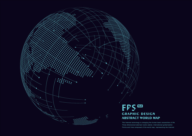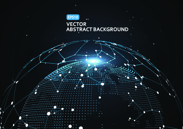 点和线构成的数字化抽象地球 互联网大数据或区块链的概念