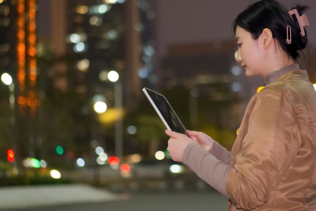 年轻的专业人士在旅途中使用智能手机和咖啡