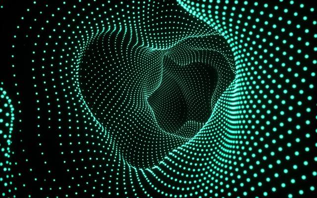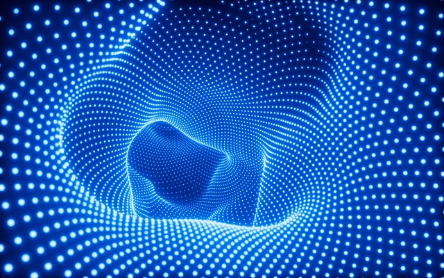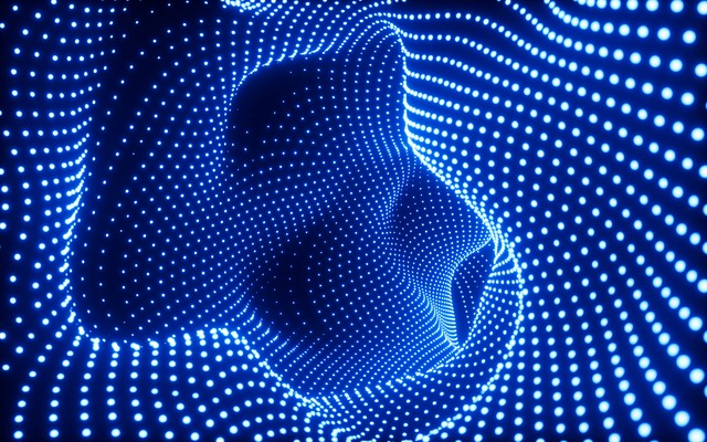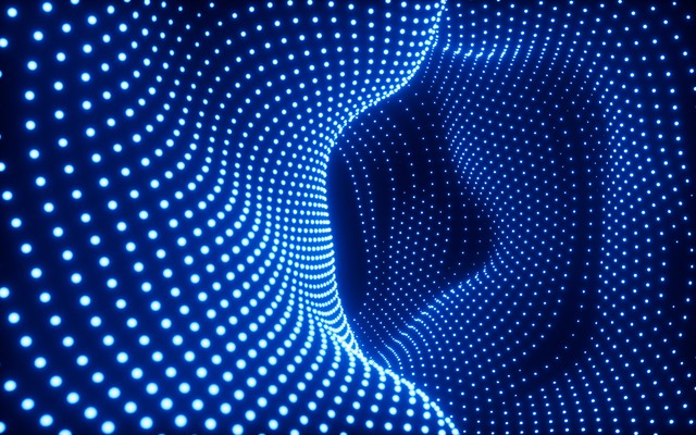 技术数字微博波段波点,科技感的运动波点发光蓝色的,粒子波,网络科技,科技感背景,网络安全技术背景。