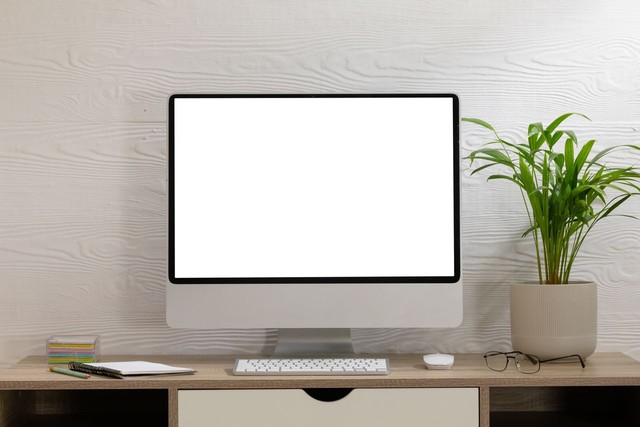 白色背景上具有复制空间的台式计算机的组成