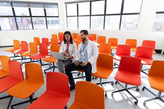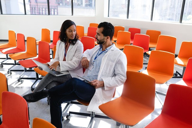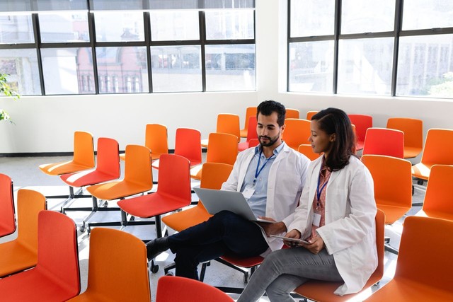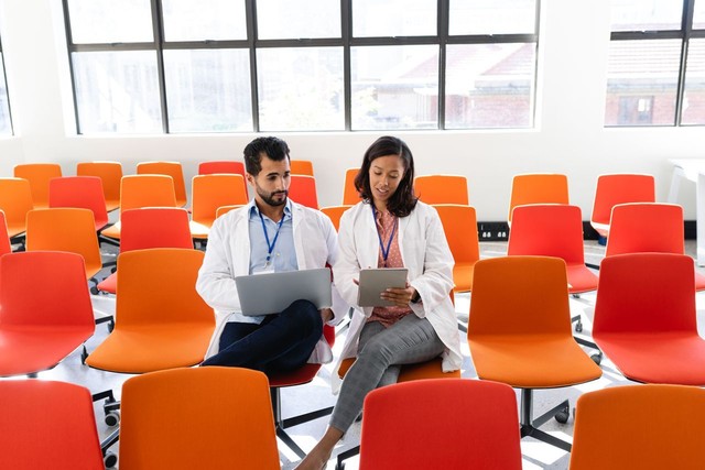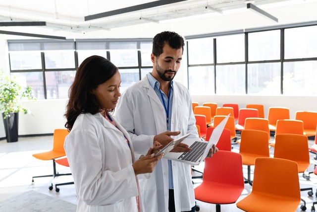 会议室里的医生使用数字技术
