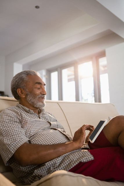 老人在家使用数字平板电脑