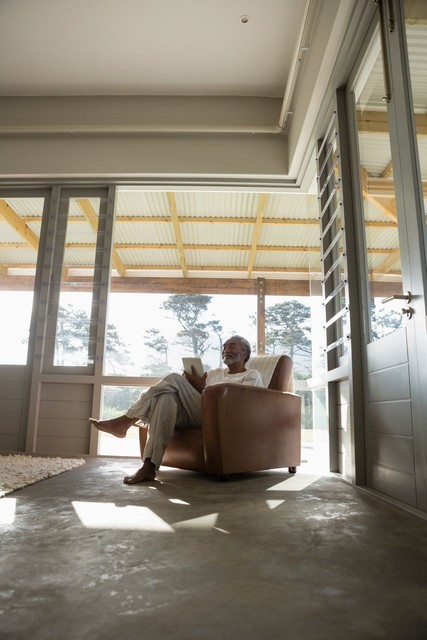 老人在客厅使用数字平板电脑