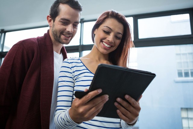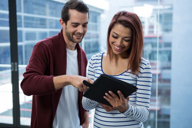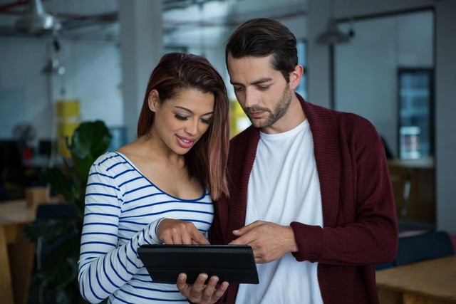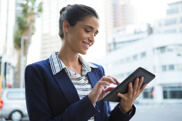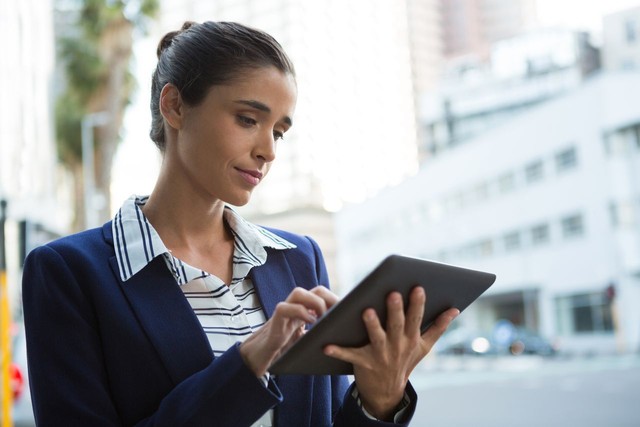 使用数字平板电脑的商务主管使用数字平板电脑的商务主管