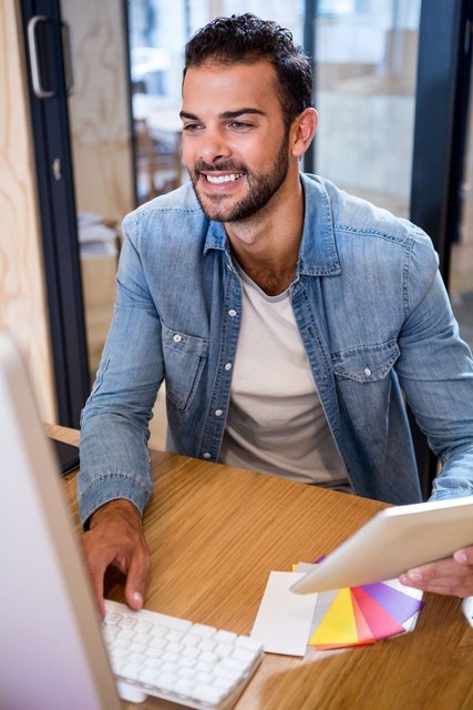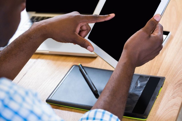 使用数字平板电脑的平面设计师