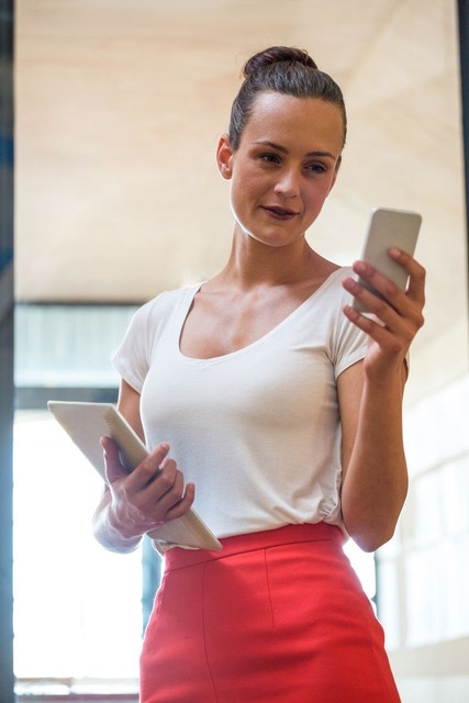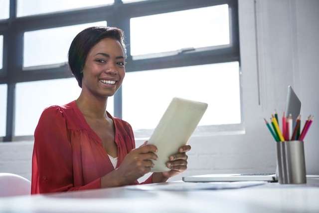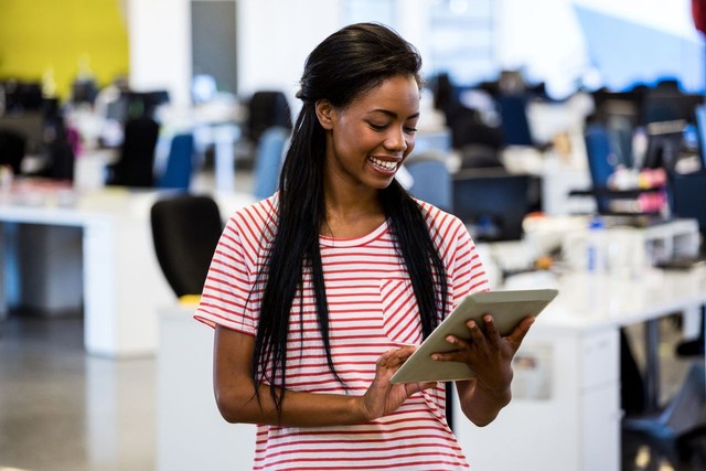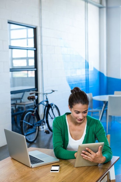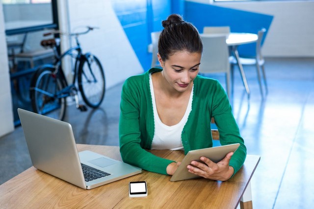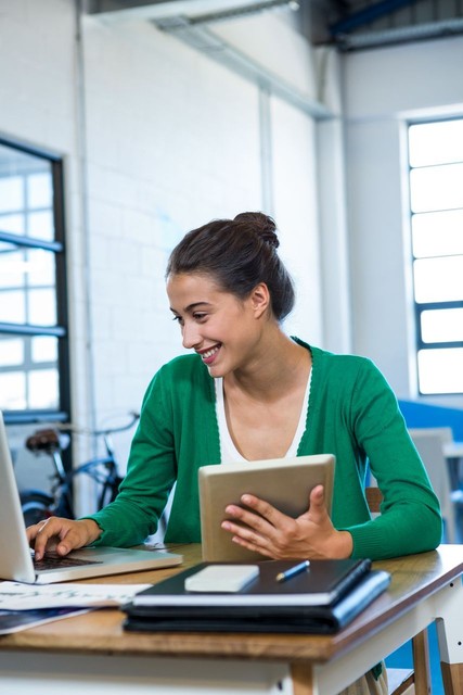 女人使用数字平板电脑