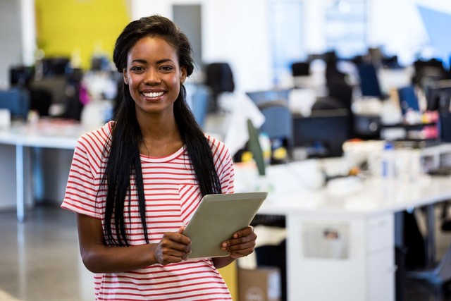手持数字平板电脑的女性肖像