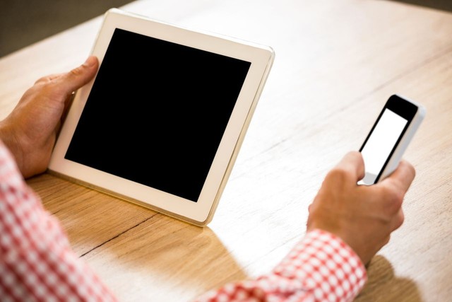 使用数字平板电脑和手机的人