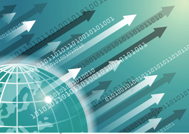 数字存储可视化,带有发光的数据流和相互连接的节点,代表技术驱动环境中的现代数据管理和信息流