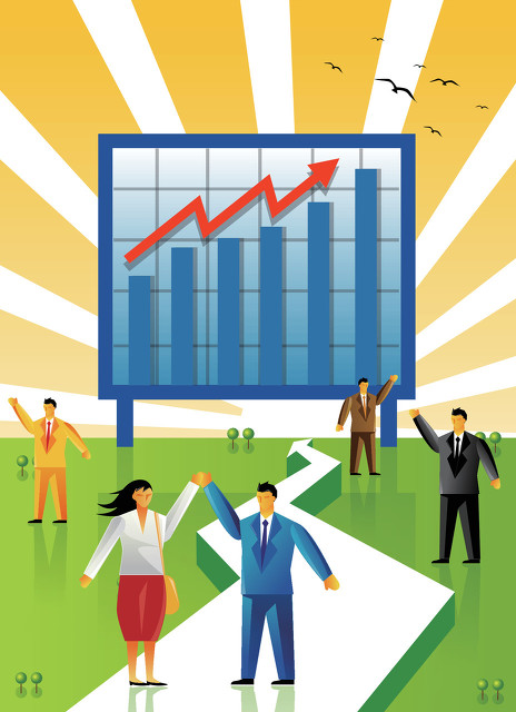 蓝色背景下成功数字技术的商业山成就战略。路径目标目标和顶部的旗帜。路线任务完成。矢量插图低多边形奇妙