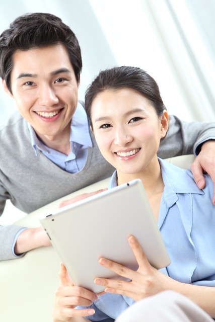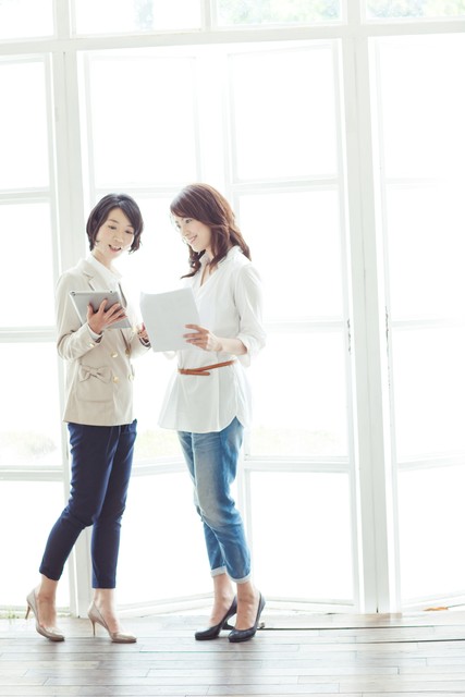 女人在桌子上使用笔记本电脑和手机的数字平板电脑