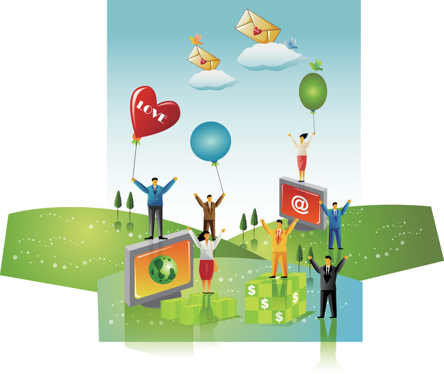 现代化的计算机图形展示云计算与数字交流,展示信息与技术的结合。