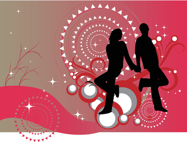 夫妇在客厅里和他们的宠物狗一起使用数字平板电脑