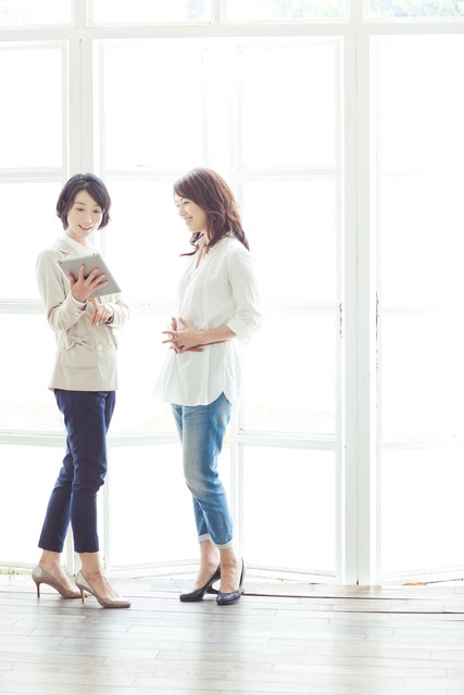 快乐的混血儿商业同事在现代工作场所讨论数字平板电脑