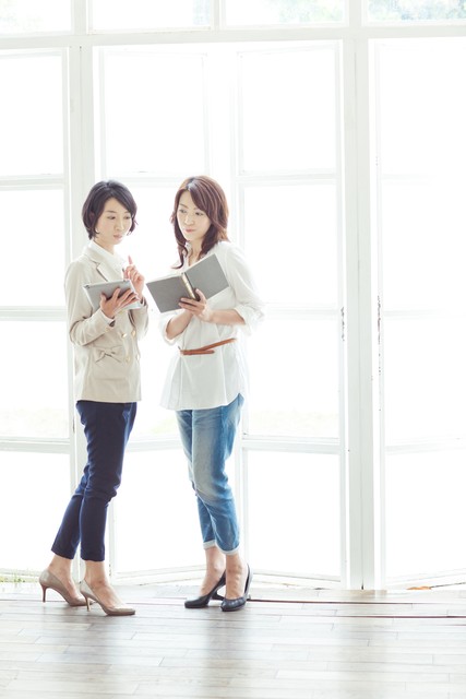 女人们站在窗边聊天