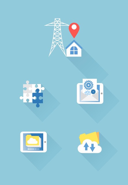 数字转型技术横幅社交媒体图标、数据、技术、社交媒体、互联网、客户、自动化、物联网、创新。商业概念。