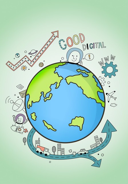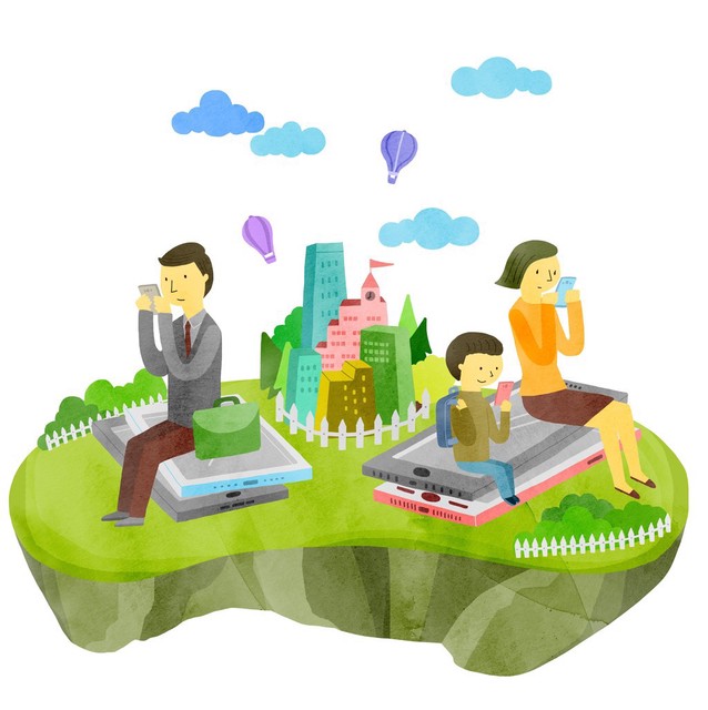 爱达荷州网络数字技术的概念图形插图。蓝色。互联网未来概念图。