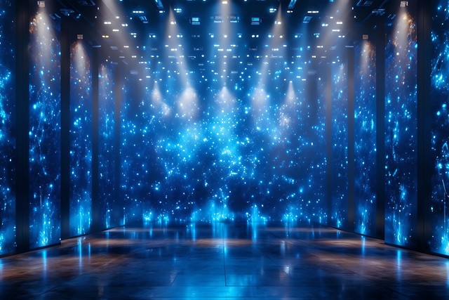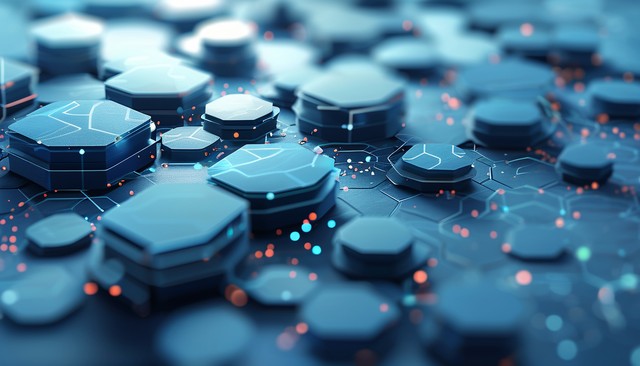 用于医学和科学横幅或演示的多边形数字模板。蓝色背景上的抽象六边形。高科技数字技术和工程概念。