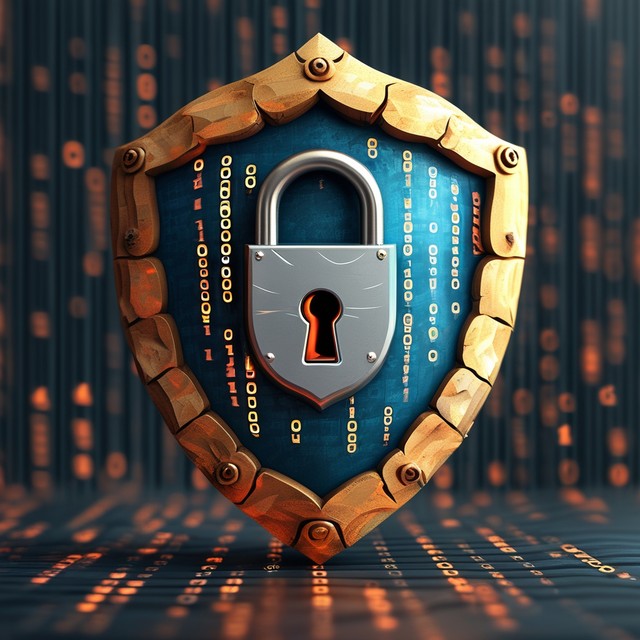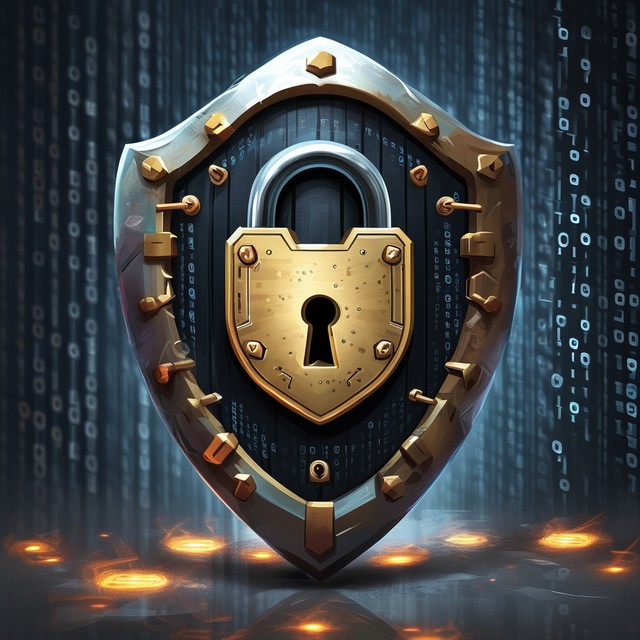 一个盾牌图标,里面有一把锁,周围是二进制代码。