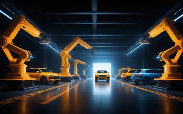 现代智能汽车在城市背景下,展示网络连接和技术元素。