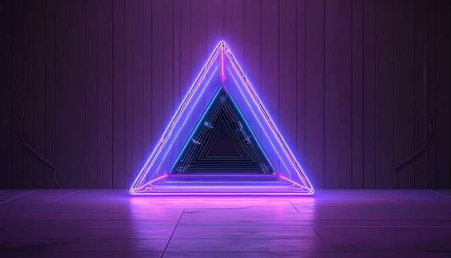 数字技术霓虹灯中心三角形灯线深紫色背景