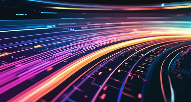 数字技术背景与蓝光效果股,技术线信息技术的蓝色背景