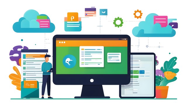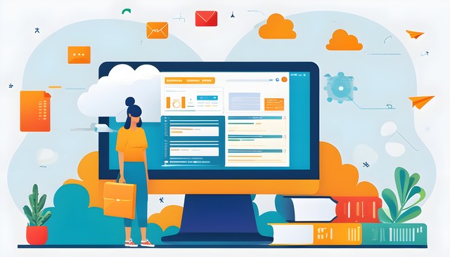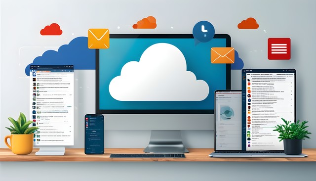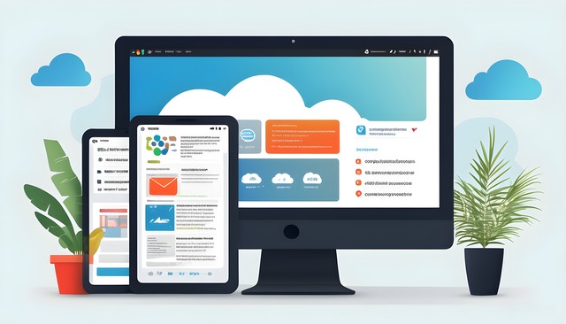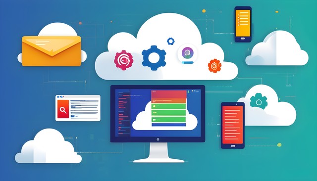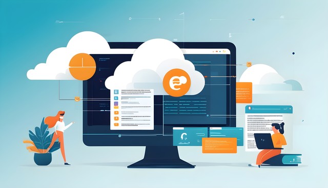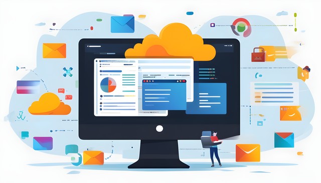 现代化的计算机图形展示云计算与数字交流,展示信息与技术的结合。