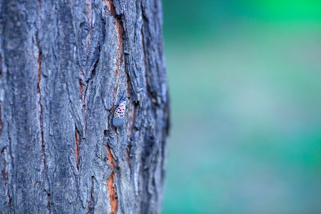 抽象简洁极简摄影,树木上的斑衣蜡蝉昆虫。