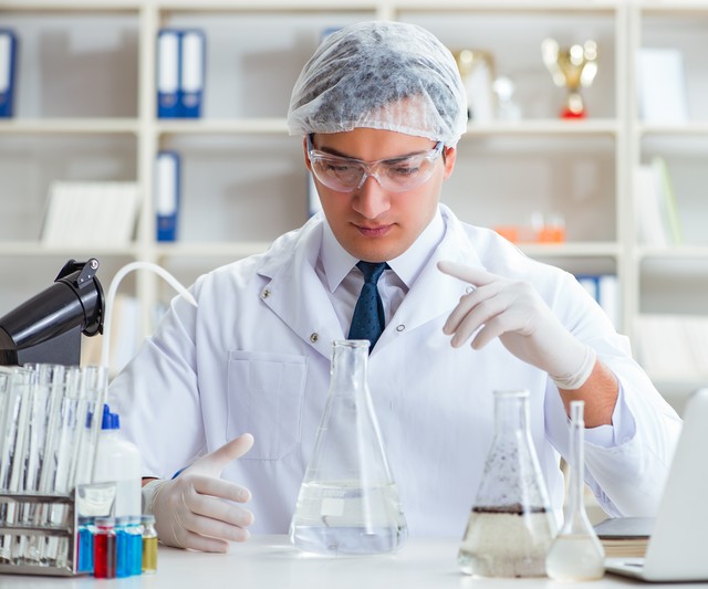 Young researcher scientist doing a water test contamination experiment in the laboratory. Young researcher scientist doing a water test contamination expe