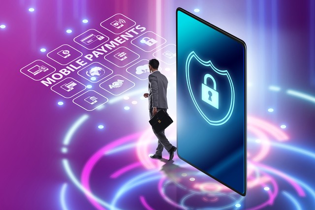 The concept of mobile payment with smartphone. Concept of mobile payment with smartphone