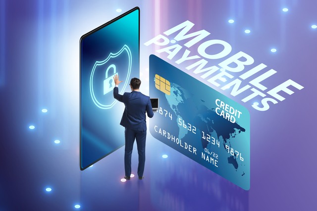 The concept of mobile payment with smartphone. Concept of mobile payment with smartphone