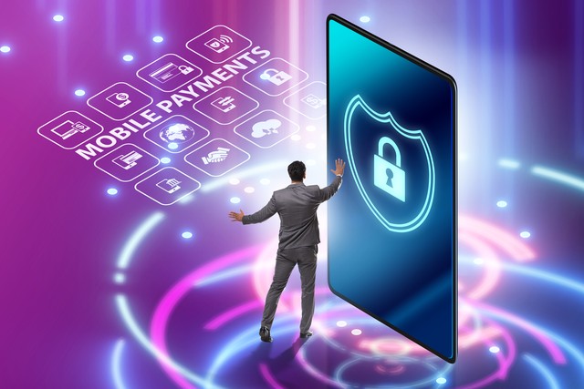 The concept of mobile payment with smartphone. Concept of mobile payment with smartphone