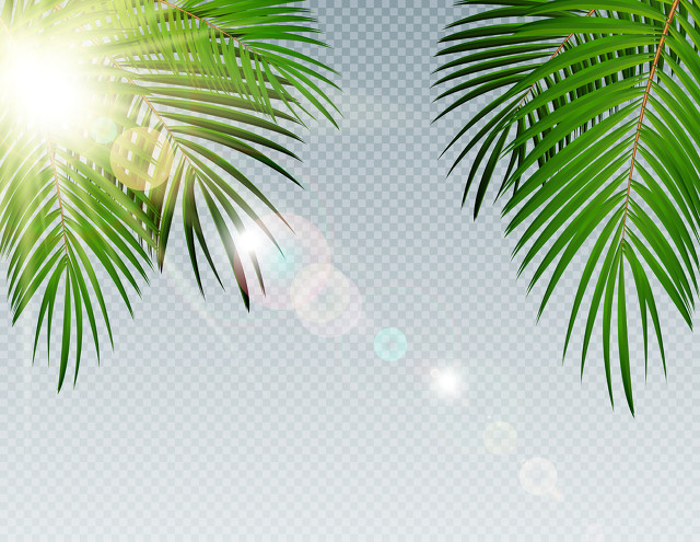 Summer Time Palm Leaf with sunbeam on Transparent Vector Background Illustration EPS10. Summer Time Palm Leaf with sunbeam on Transparent Vector Background Illustration