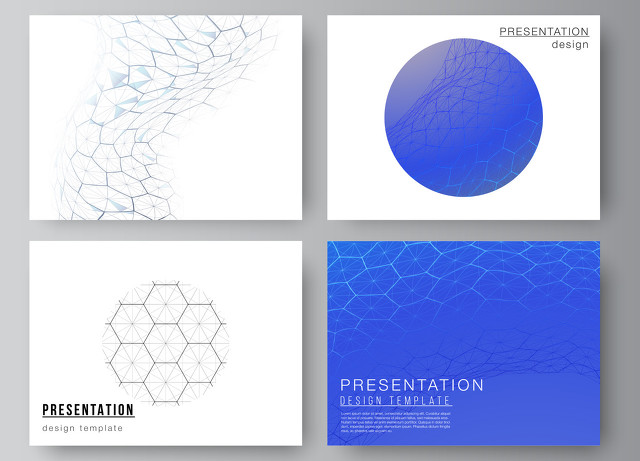 Vector layout of the presentation slides design business templates. Digital technology and big data concept with hexagons, connecting dots and lines, polygonal science medical background. Vector layout of the presentation slides design business templates. Digital technology and big data concept with