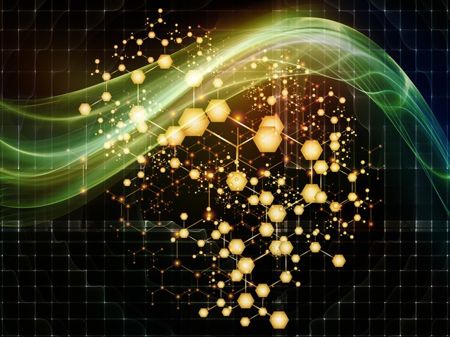 Molecular Structure series. Arrangements of abstract atoms into crystal network on the subject of science and technology.
