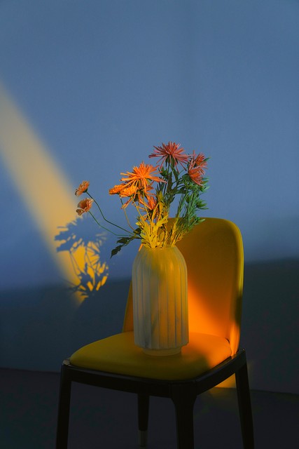 花 花瓶 凳子 夕阳 光影