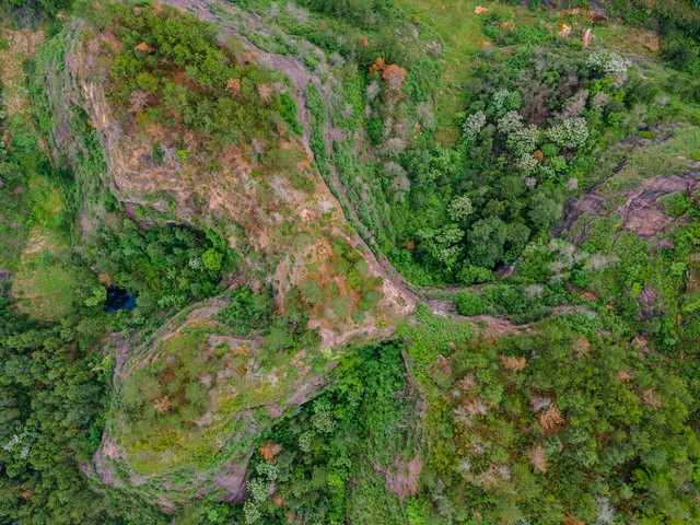 航拍江西赣州于都县里仁村石螺寨,百花盛开如画,险峻丹霞风景醉人!