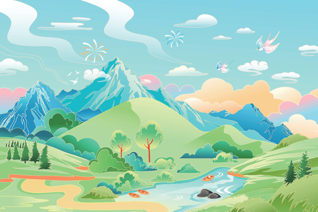 卡通五一劳动节职业行业党建庆典建军节建党节中国传统节日建筑电商旅游中国风国潮风景渐变矢量插画