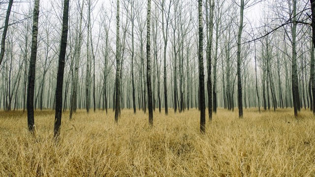 深秋 骑车来到宿鸭湖湿地,虚无缥缈的云雾给大地披上了神秘的色彩