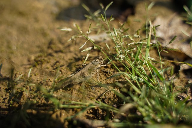 蝗虫蚂蚱在落叶中