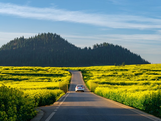 清晨 云南罗平 金鸡峰丛油菜花海 日出