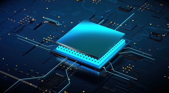 芯片金融科技赛博朋克人工智能三维渲染电路板技术背景处理器CPU和GPU的概念