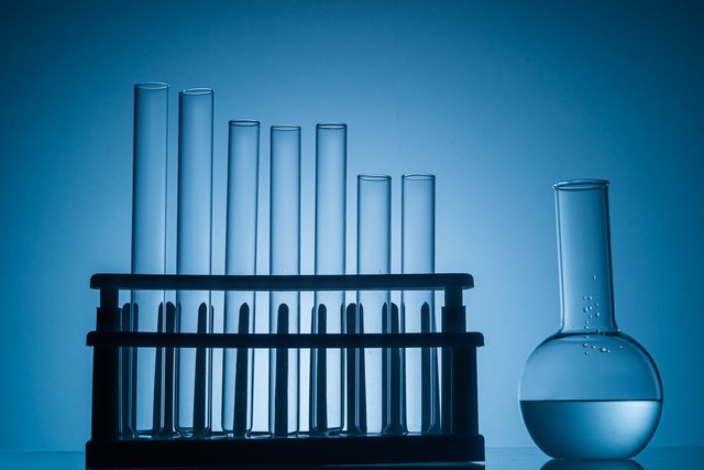 实验室内装有液体的 玻璃器材器皿