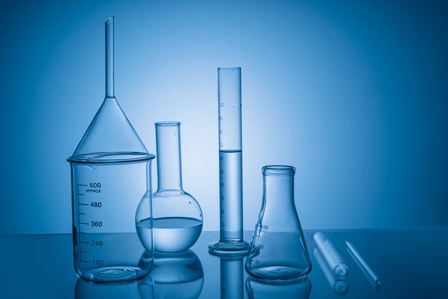 实验室内装有液体的 玻璃器材器皿