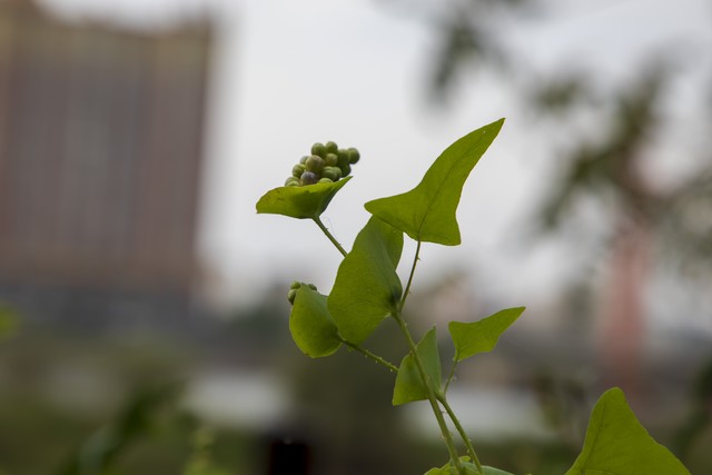 2022年9月22日,吉林省吉林市松花江畔自然生长的杠板归结出了蓝莓似的果实。